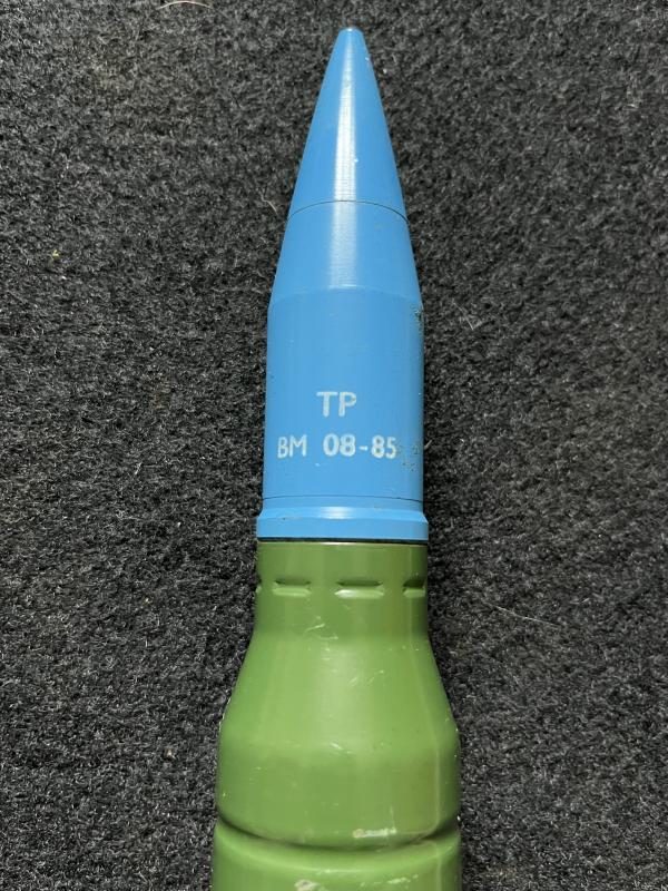 This is a nice 25mm TP Cannon round (Inert), Approx. 22.2cm long, UK sales only. Check out our YouTube channel below. https://m.youtube.com/results?sp=mAEA&search_query=chase+militaria+