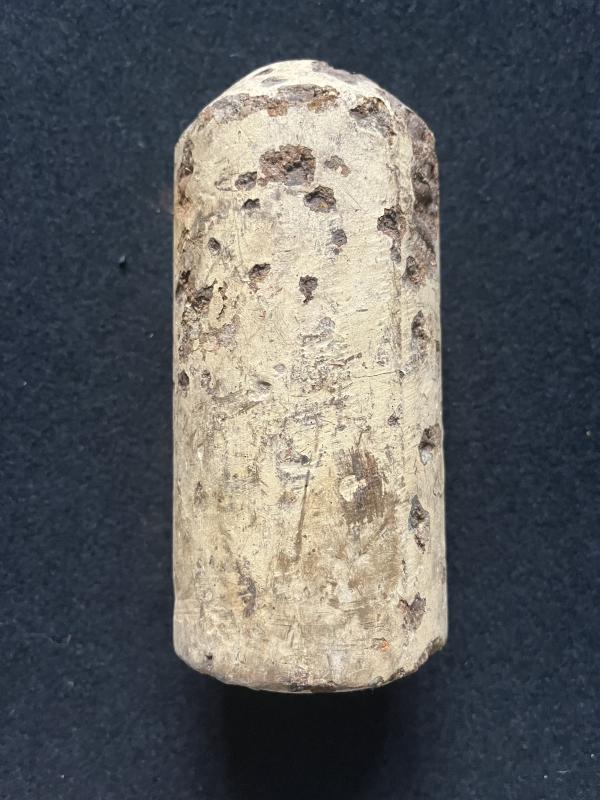 This is a WW2 German concrete mine (Inert). Check out our YouTube channel below. https://m.youtube.com/results?sp=mAEA&search_query=chase+militaria+
