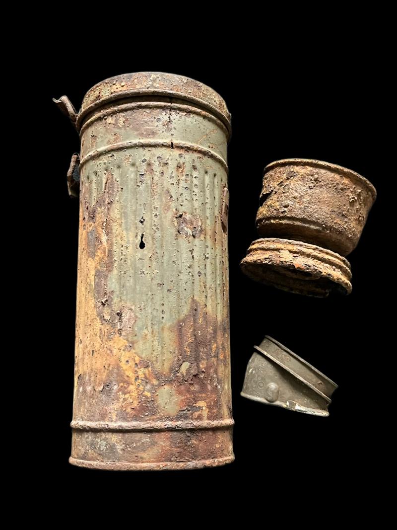 RELIC WW2 GERMAN GAS MASK CONTAINER WITH NOSE AND FILTER