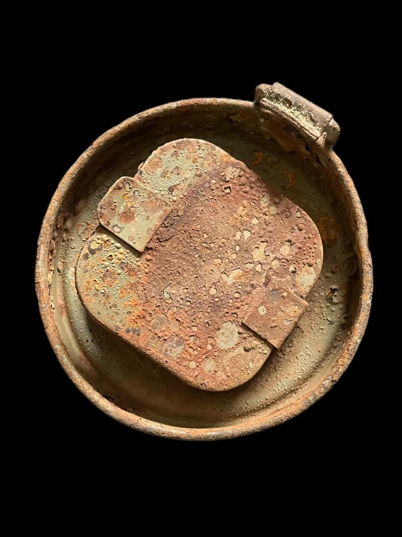 This is a relic WW2 German Gas mask container which contains a filter and nose part from the gas mask, this was found in Latvia in the Kurland pocket and in good condition for a relic.