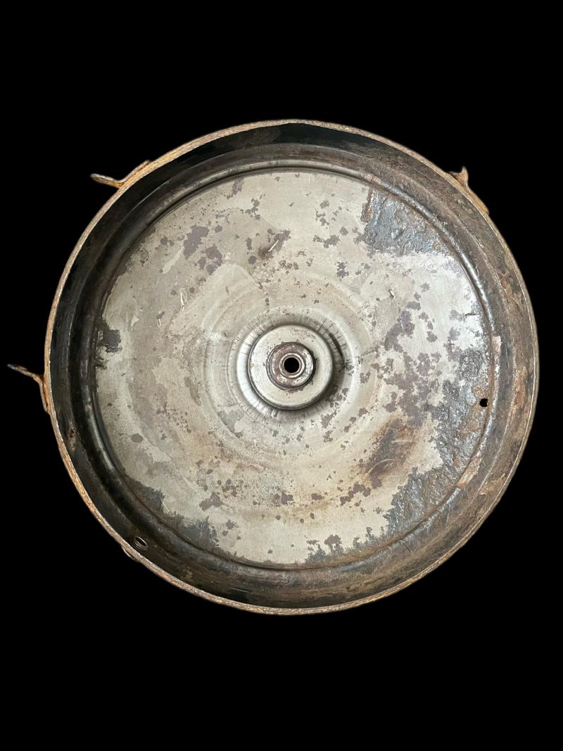 This is a WW2 German Tellermine in inert condition, has a few holes on top, but can also still see some of its original paint. UK sales only.