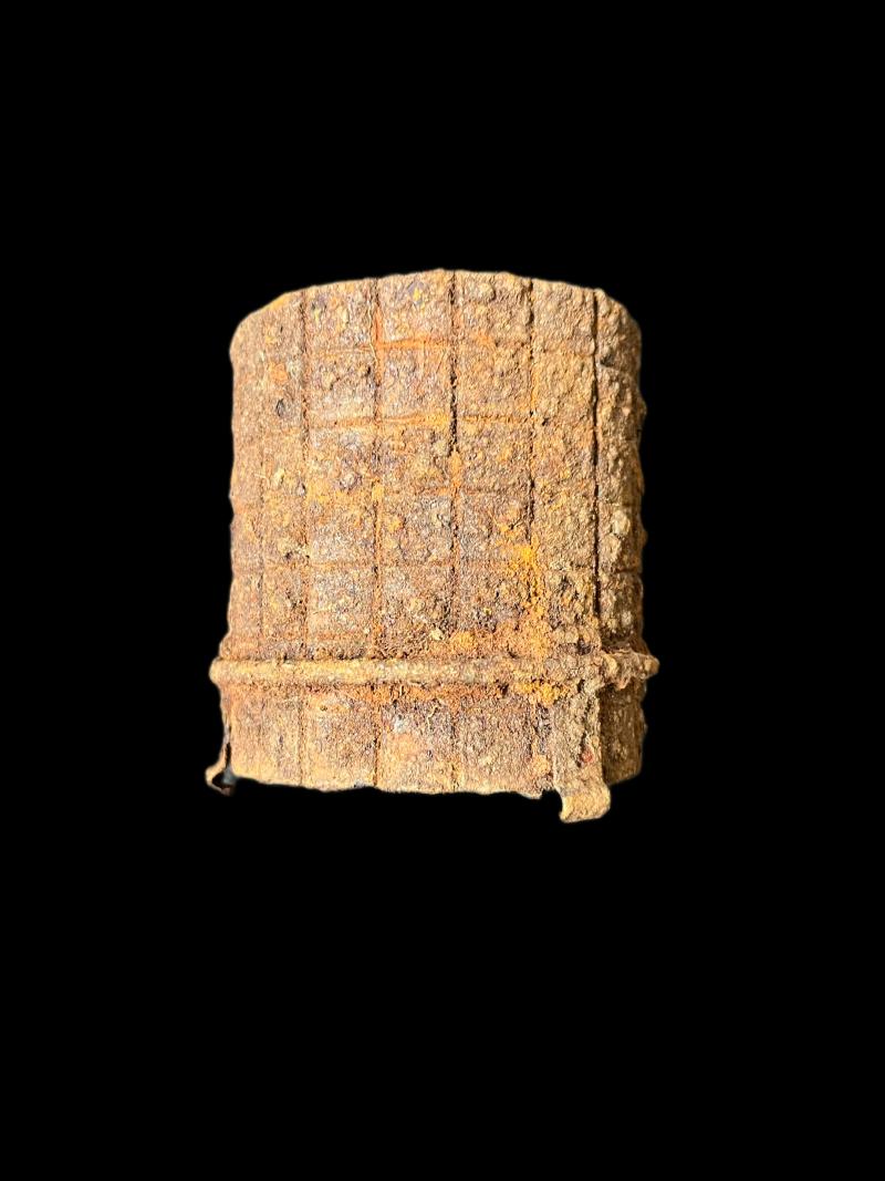 This is a WW2 German M24/ M43 Stick grenade fragmentation sleeve which still maintains its 3 catches. Found in Latvia Kurland Pocket.