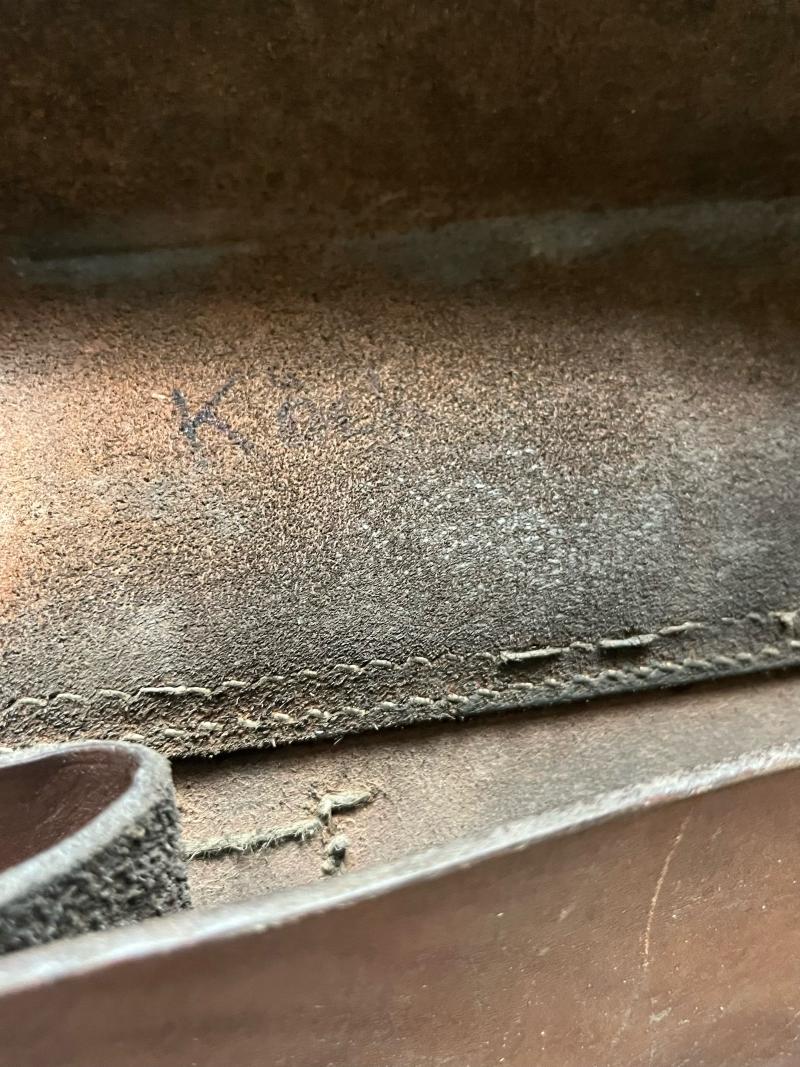 This is a German/Austrian leather patrol pouch, around from the 50s. there is a split in the stitching down the side and the top leather fastener is missing.