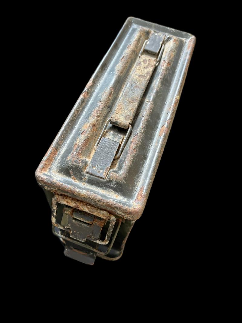 This is a WW2 U.S. .30cal ammo tin. Check out our YouTube channel below. https://m.youtube.com/results?sp=mAEA&search_query=chase+militaria+