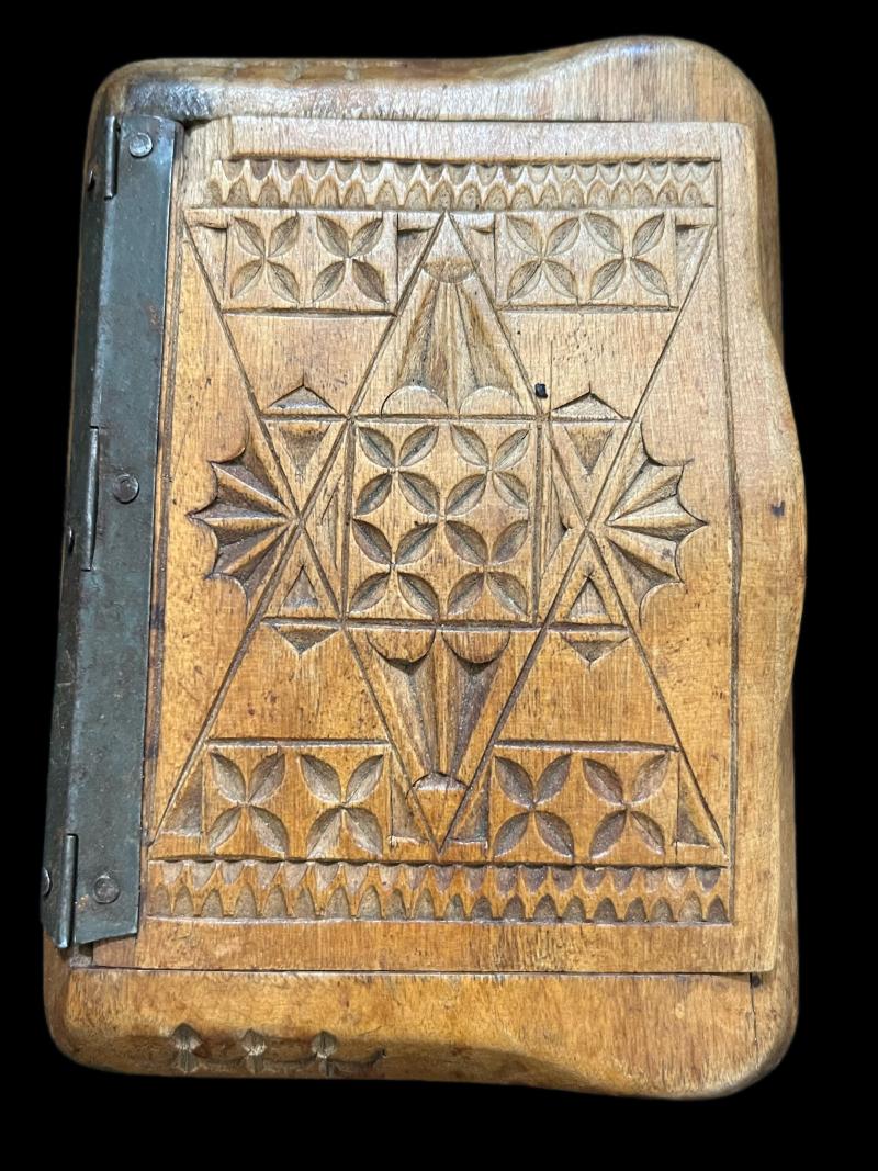 This is a WW2 Soviet carved wooden box which is dated 1943 on the inside and comes with a picture of 2 Soviet Soldiers. Approx. 12 x 8cm.