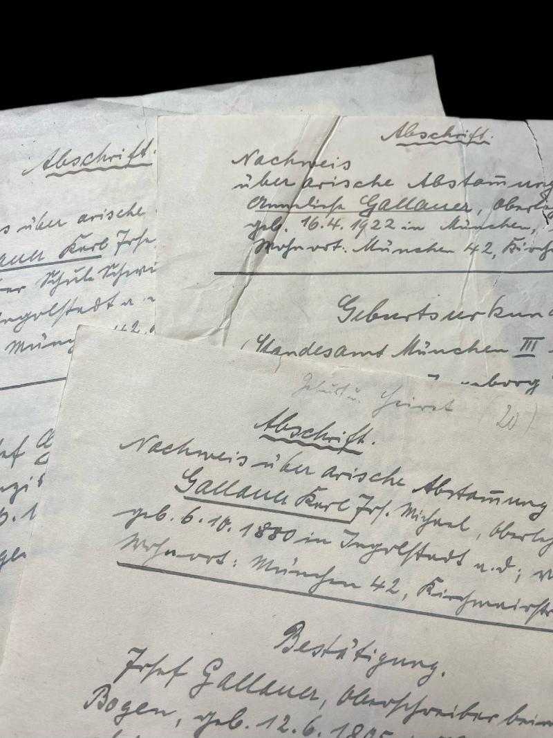 This is a set of 4 pages to confirm Aryan Decent with details of family members. Check out our YouTube channel below. https://m.youtube.com/results?sp=mAEA&search_query=chase+militaria+