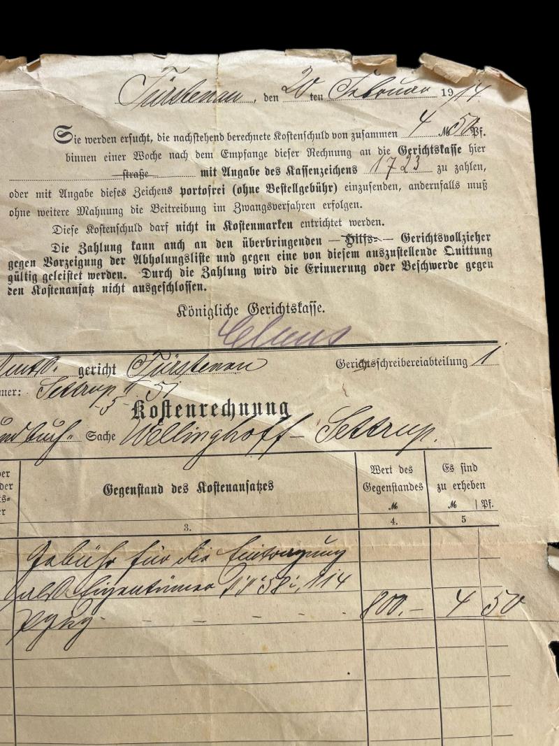 This is a WW1 German Court payment request document. Check out our YouTube channel below. https://m.youtube.com/results?sp=mAEA&search_query=chase+militaria+