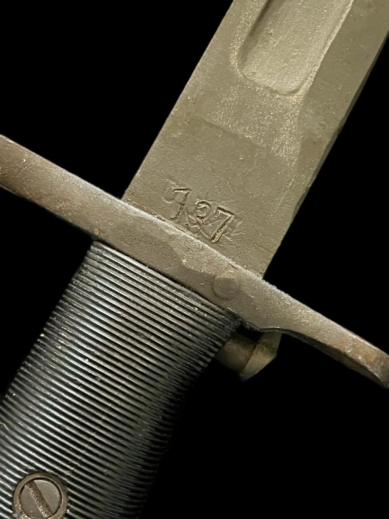 This is a nice U.S. M1 Garand bayonet with the makers U.C and the date 1942. Age Restricted Item. Proof of age must be provided. U.K. Sales Only.