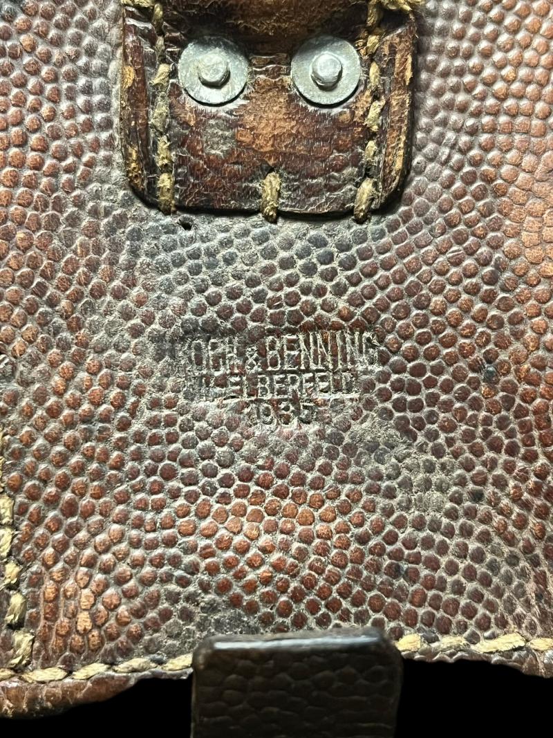 This is a nice WW2 German Luftwaffe Brown K98 Ammo pouch, this still has all 3 dividers inside, the makers and the date 1935 is on the back.