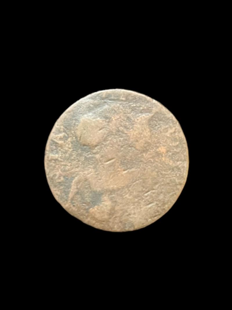 This is an old Copper coin. Check out our YouTube channel below. https://m.youtube.com/results?sp=mAEA&search_query=chase+militaria+