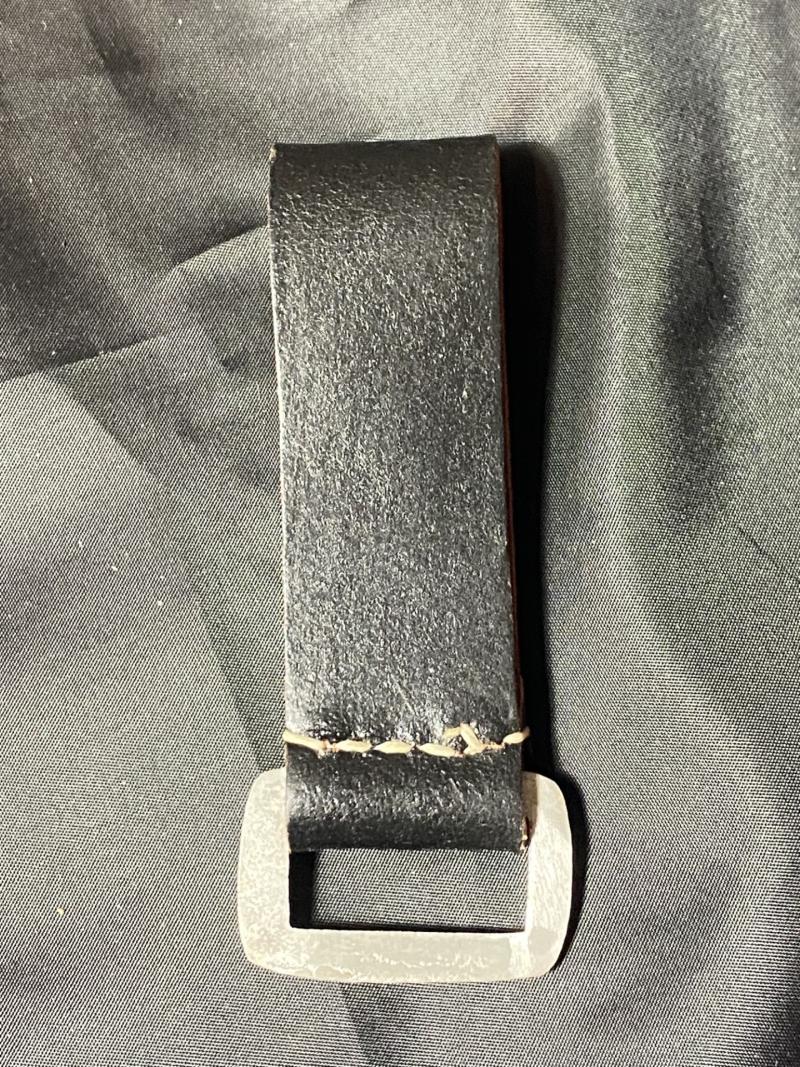 This is a 37 pattern belt with one brace attachment, cant see any dates on the belt and its to difficult to make the marks on the brace attachment out, the belt has has a small area stitched as you can see in the picture. read more